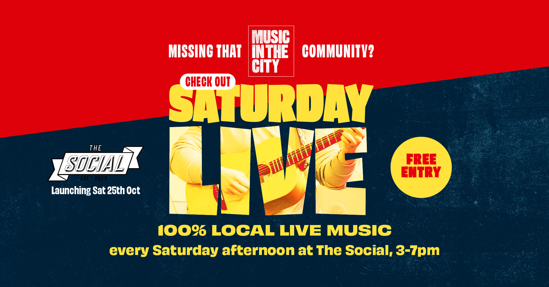 It’s free, it’s all live, lots of different artists. Please do support the Southampton live music scene… The Social is the place to be Saturday afternoons.